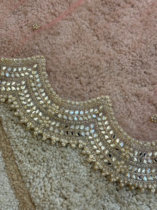 Barbie : Custom Embroidered Pink Veil with Scalloped Floral Border & Stone Embellishments