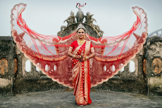 Enchanted Wings : A Red Bridal Veil with Stone-Studded Butterflies