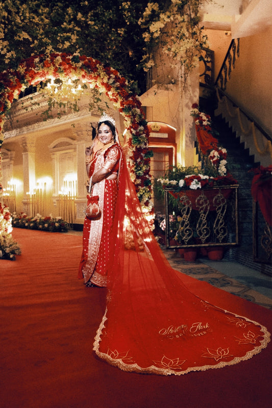 Maroon Majesty : The Five-Petal Cut Veil with Personalised Initials