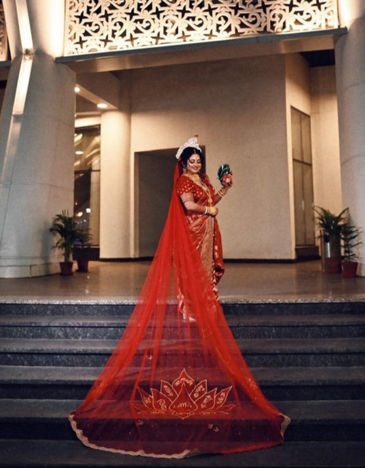 Patralekha : A Sabyasachi inspired Veil with personalised embroidered bengali Quote