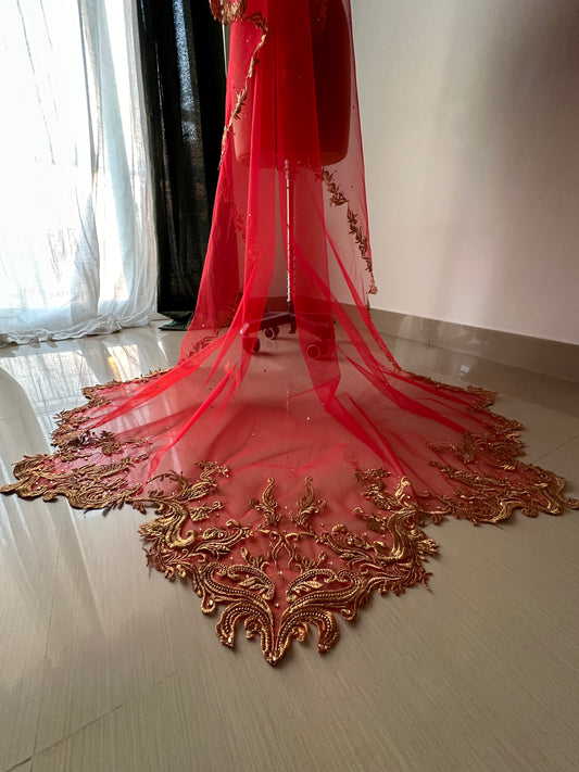 Velaria Royale - Victorian and Vintage style Red Chapel length Veil
