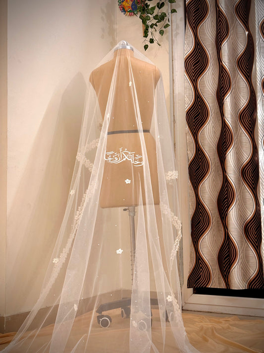The Five-Petal Cut Veil with Floral Buta Border Work
