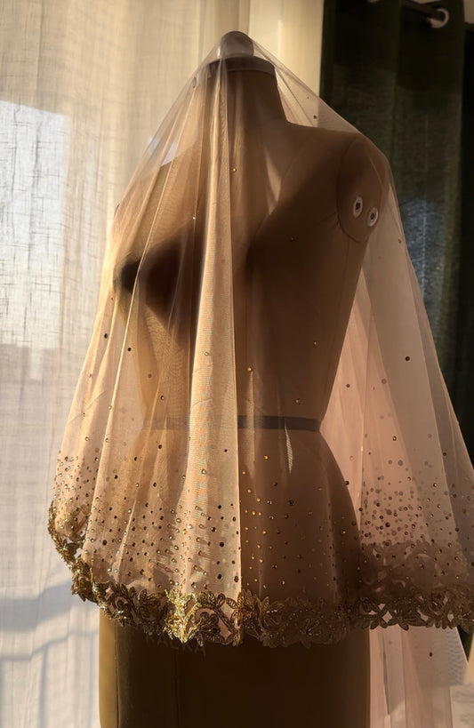 Stardust Blush – Hand Embellished Veil with Ombre Crystal Shimmer