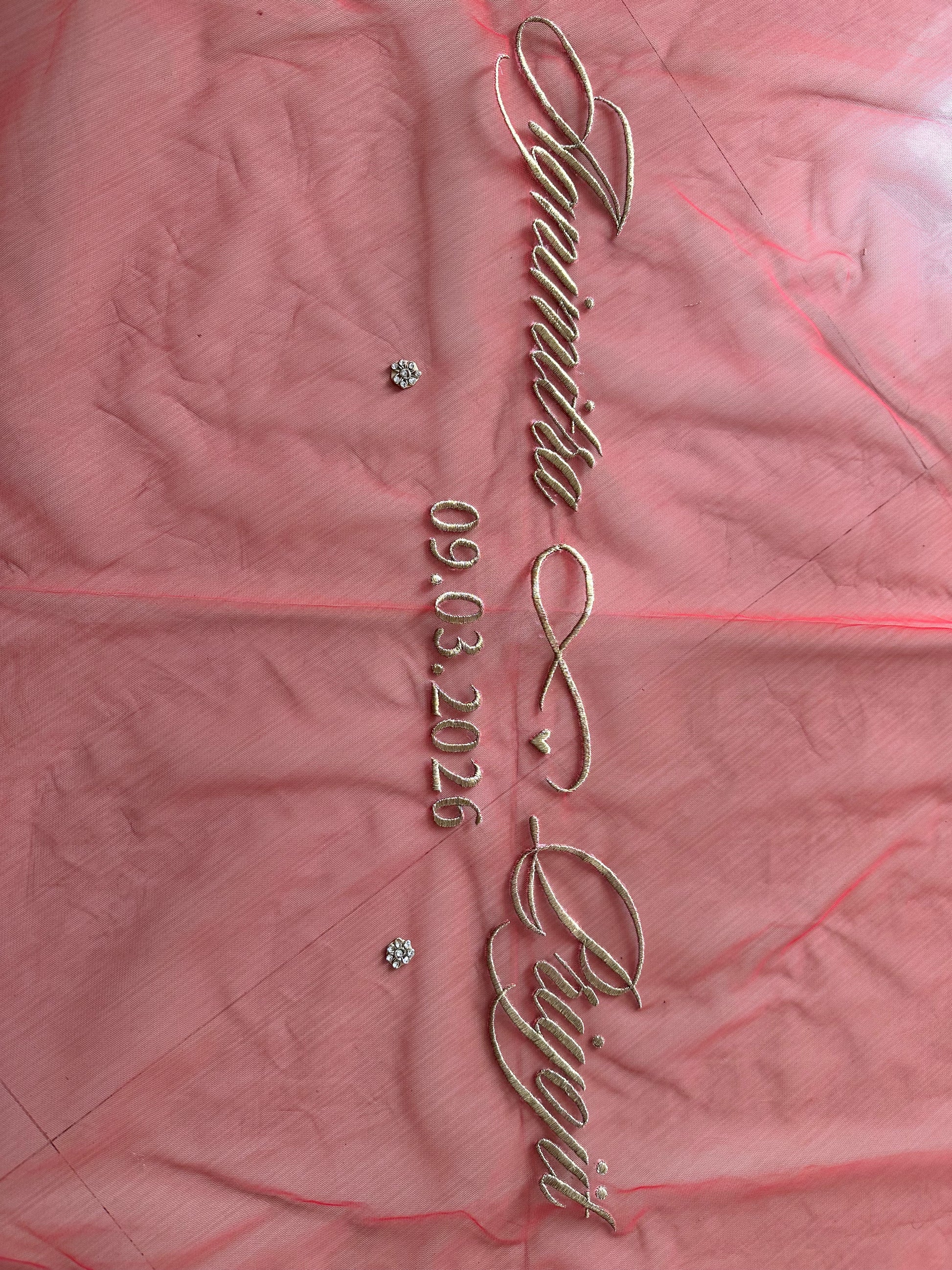 Border Work : A Sabyasachi-Inspired handcrafted border with Golden matte balls outlining