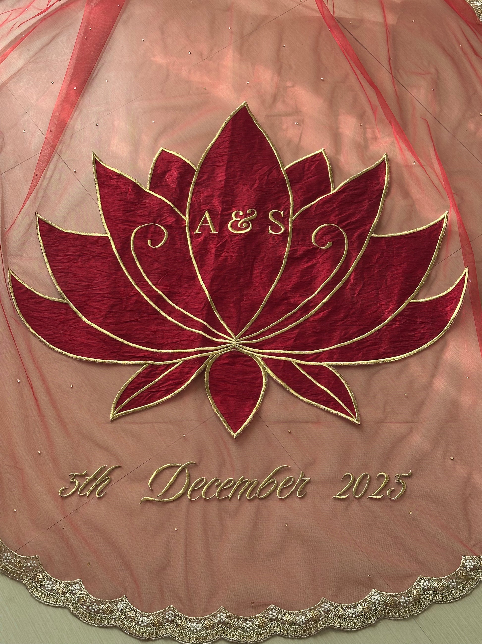 Customisation : 30X30 inches Lotus applique with initials & Wedding date