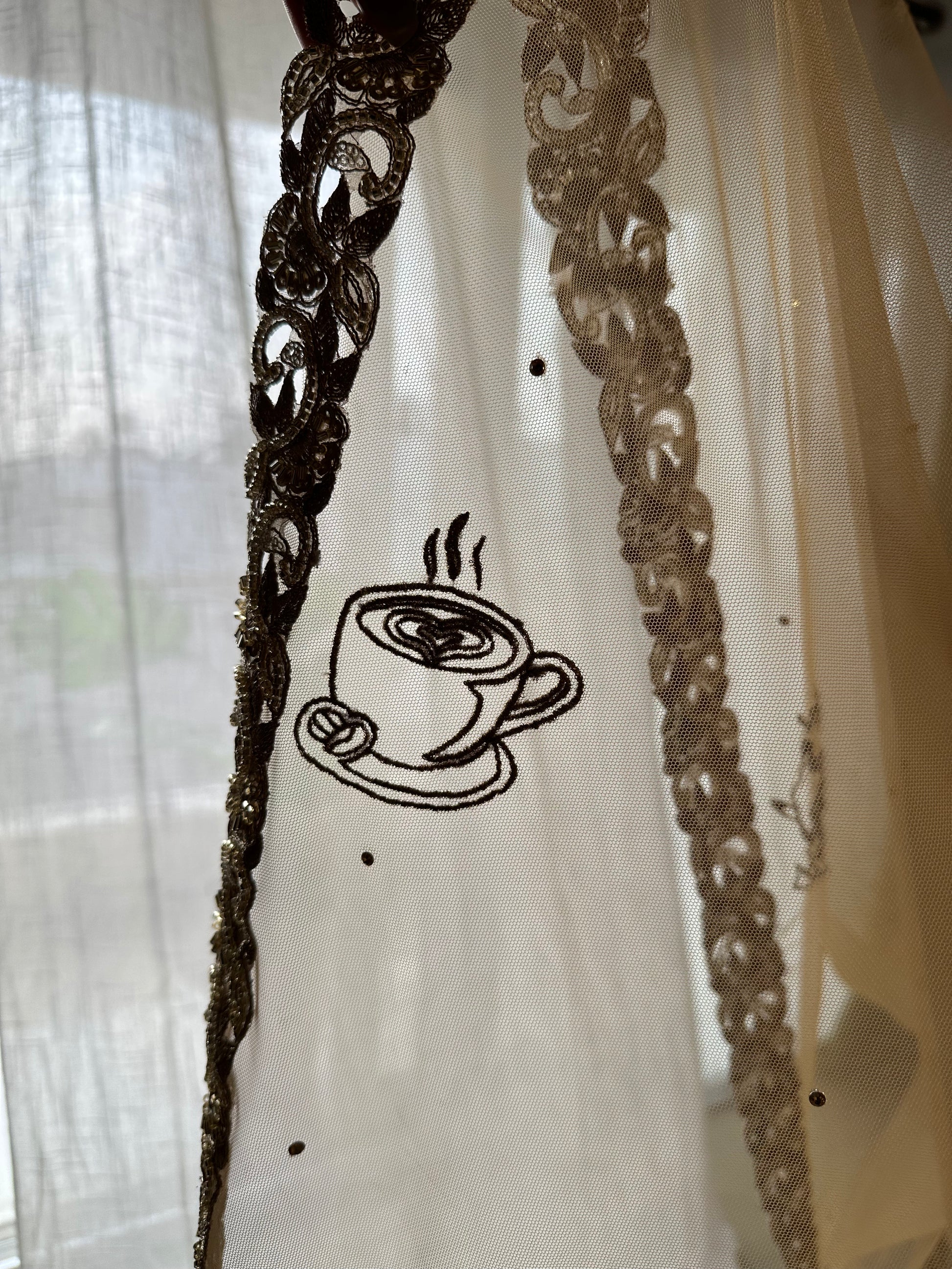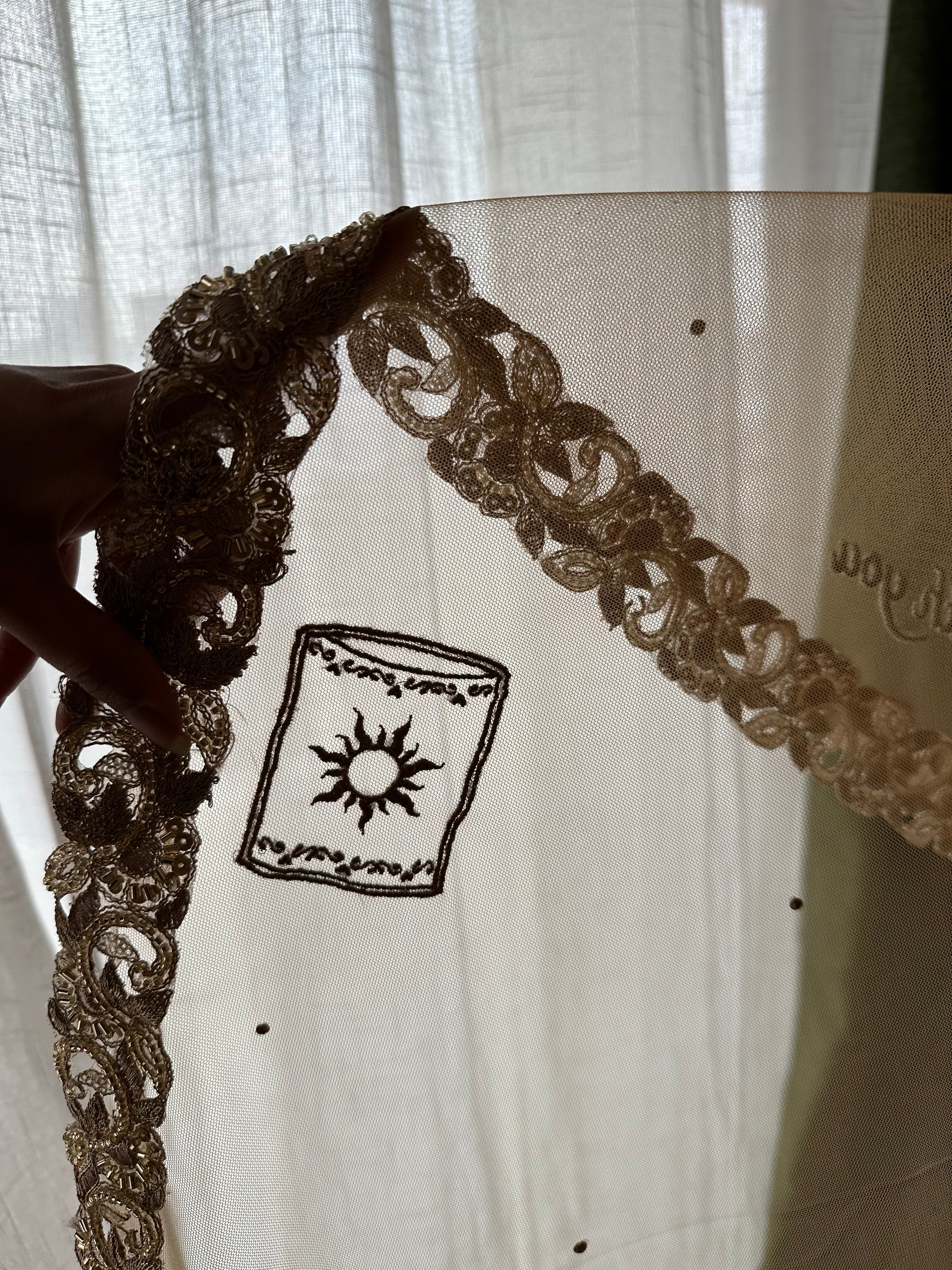 Golden Hour : A Love story veil in Golden with 10 Storytelling Motifs and Cut-work Floral Border