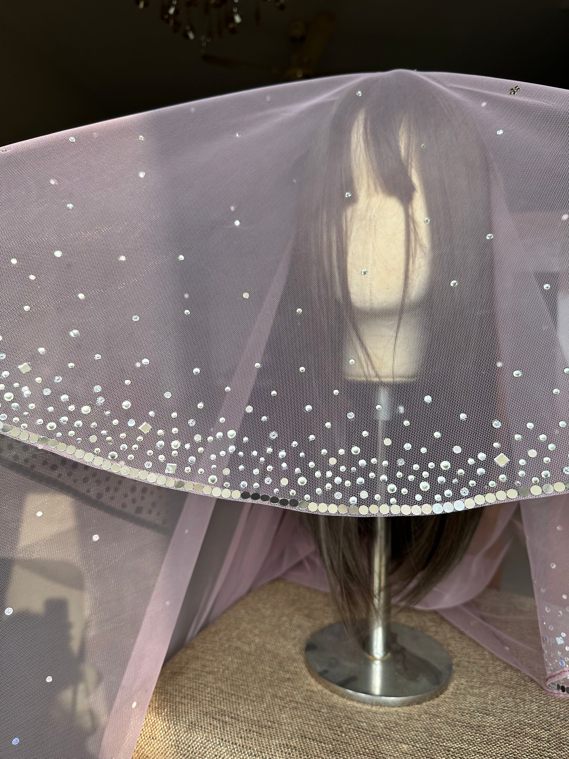 Stardust – A Dusky Pink Hand-Studded Mirrored Bridal Veil with Ombre Embellishments