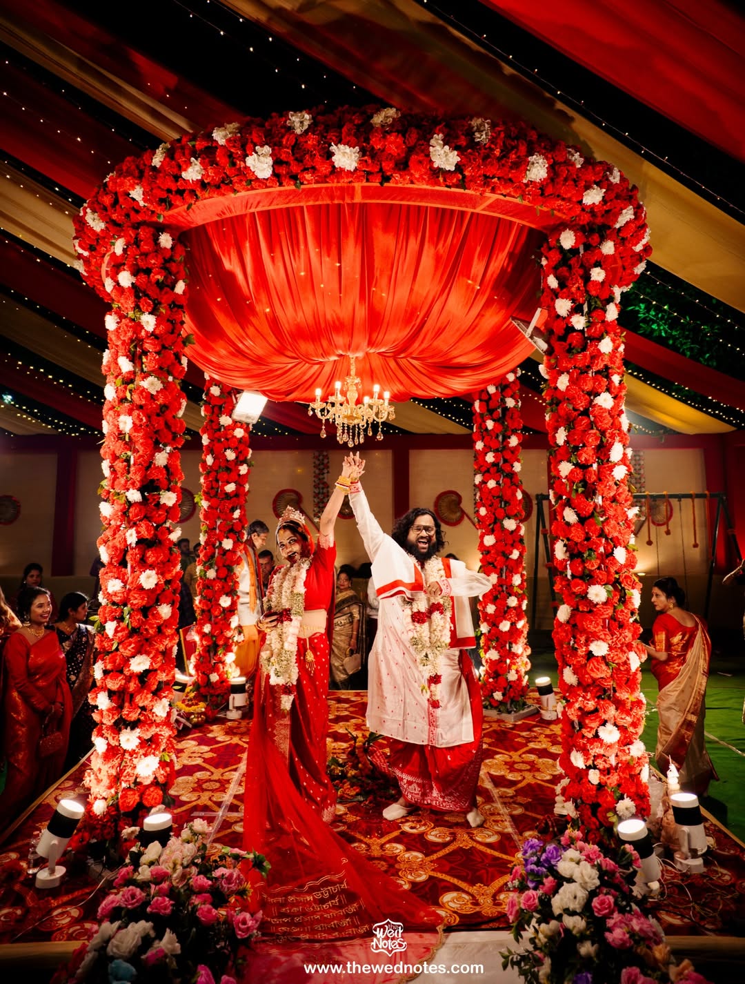Suchipatra : A Handcrafted Red Cathedral Bridal Veil with Bengali fonts personalised