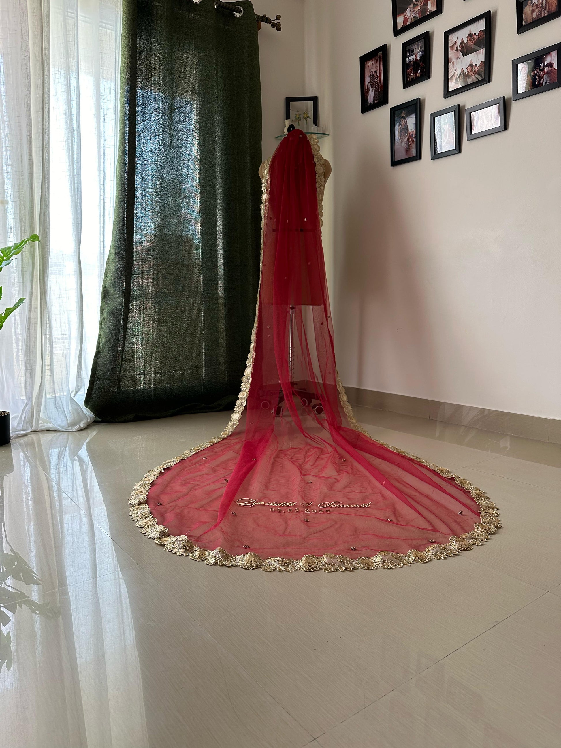 The Origin Veil — Personalized Edition || Maroon-Gold Classic - Stone studded Cathedral Length Veil